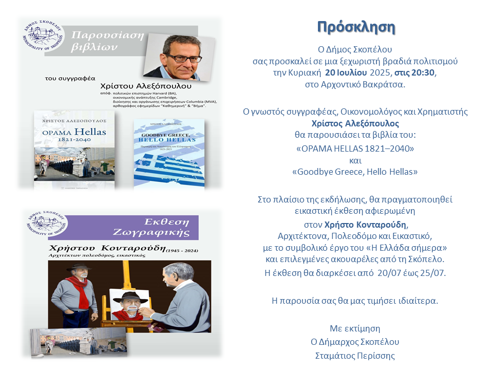 Παρουσία του δημάρχου Κηφισιάς Γιώργου Θωμάκου, στελεχών της αυτοδιοίκησης, επιστημόνων, επιχειρηματιών, καλλιτεχνών και πολλών ποιοτικών επισκεπτών, πραγματοποιήθηκε στην Αίθουσα Πολιτιστικού “Δήμαρχος Βασ. Γκατσόπουλος” του Δημαρχείου Κηφισιάς, η παρουσίαση του βιβλίου του συγγραφέα Χρίστου Αλεξόπουλου ” Όραμα Hellas: 1821 – 2040 “, Εκδόσεις Παπαζήση.